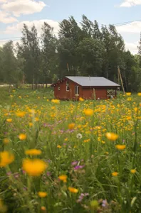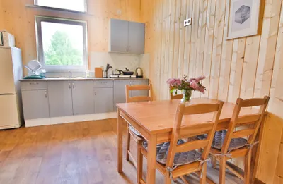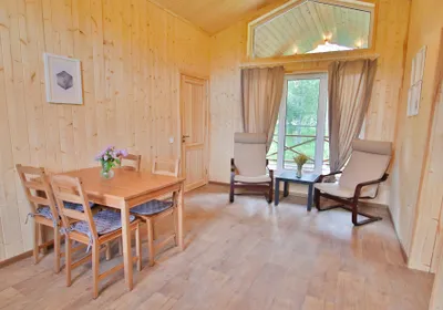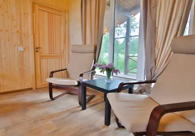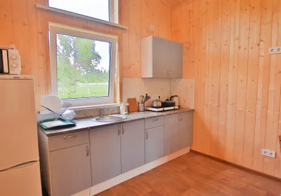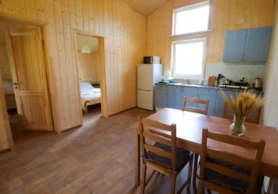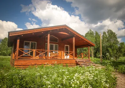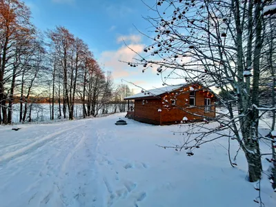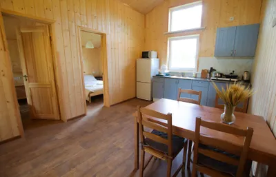 Уютный домик на 4 человека. Всё необходимое для проживания есть. Отвлекаешься от городской суеты и уходишь в нирвану😁переживали, что будет холодно спать, так как из отопления только три обогревателя, но нет, очень комфортно. Очень тепло. Всего на территории 18 подобных домов, но никто не шумит, нет дискомфорта. Расположение домиков удачное. Рядом с каждым домиков своя мангальная зона с только угли не забудьте) Рядом есть озеро, есть возможность также арендовать посещение бани или купели. Баня потрясающая на дровах. А ещё к вам в гости могут заглянуть и поздороваться местные хозяйские котики, они дружелюбные и очень красивые